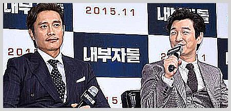 배우 조승우와 '내부자들'에서 팽팽한 연기 대결을 하며 호흡을 맞춘 이병헌은 조승우보다 10살 연상입니다. 나이가 한참 많은 베테랑 배우들과 나란히 연기를 하면서 밀리지 않는 존재감을 드러내어 생긴 노안 현상이라고 볼 수 있겠습니다. 유순한 듯 하면서도 날카로운 분위기의 마스크와 빈틈없이 디테일한 연기력으로 인정 받는 동 나이대 최고의 연기파 배우임은 틀림 없습니다.